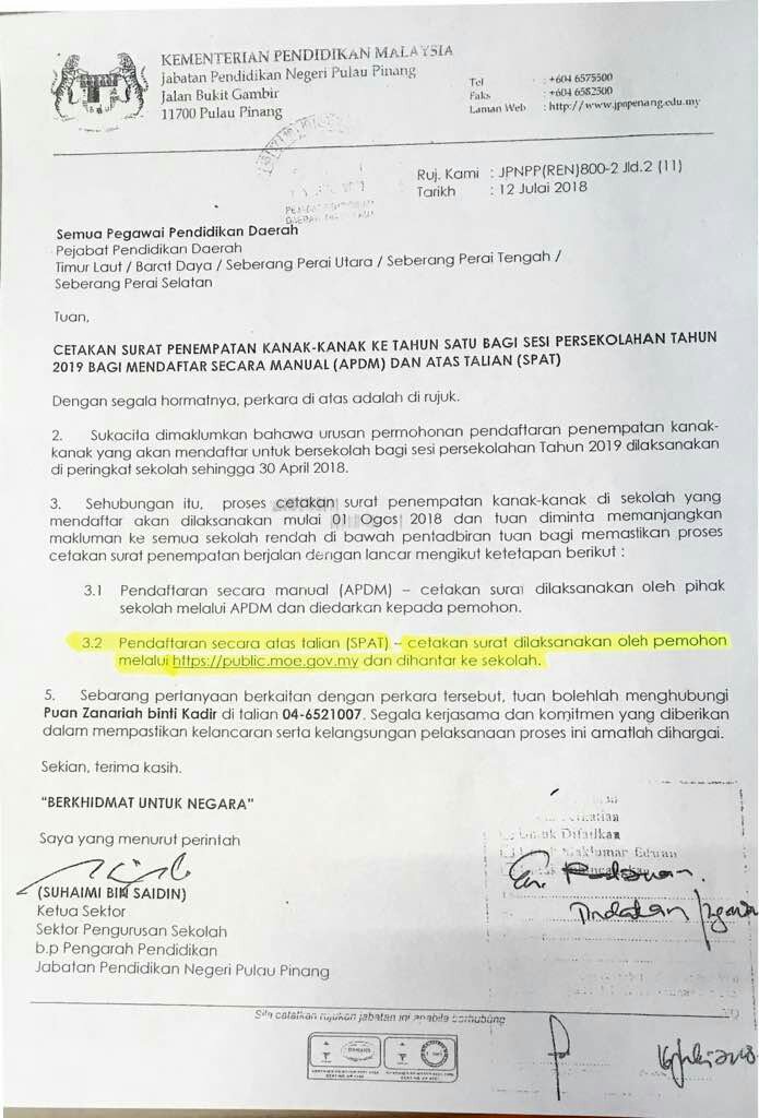 Surat Penempatan Kanak-kanak Tahun 1 2019