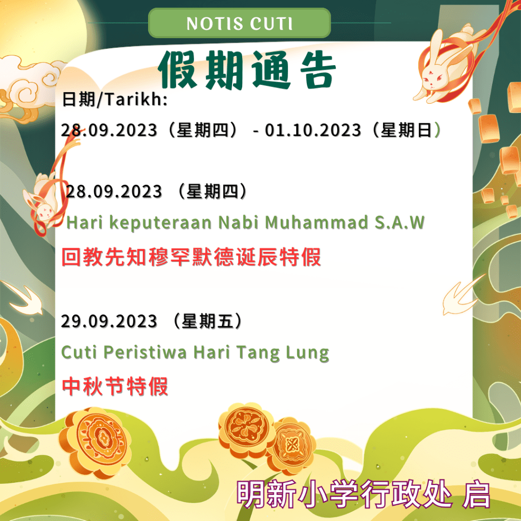 明新学校 SEKOLAH JENIS KEBANGSAAN (CINA) MIN SIN 86, JALAN TUN DR. AWANG, RELAU, 11900 BAYAN LEPAS, PULAU PINANG. Tel & Fax: 04-6422488