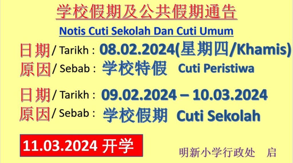 • 明新小学校历 Takwin Sekolah