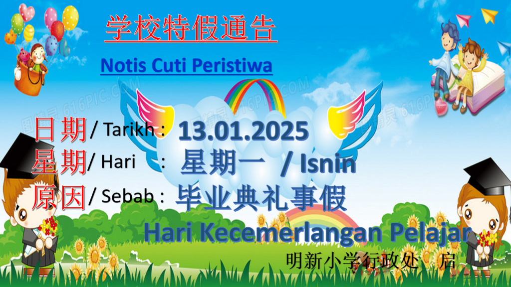 13.01.2025(Isnin) Cuti Peristiwa Hari Kecemerlangan Pelajar